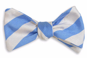 About This Item: Carolina Blue and White are the official colors of a certain university here in North Carolina. Together, these colors most certainly represent a positive outlook with a rich culture of winning. Part of our All American collection, this bow tie gives off a similar seasoned, yet courageous tone perfect for the adventurous dresser. It features our customized striped pattern, and is made with our exclusive Italian woven silk fabric that offers a premium, lightweight and ribbed texture.