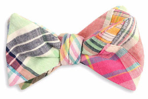 About This Item: Toss the crawdad boil on the table and dig in! Celebrate the exciting culmination of family and food this season with the Crawdad Pink Patchwork Bow Tie. This bright, stylish madras pink plaid bow tie will make a statement at any event or occasion you wear it to. This self-tie bow tie is hand cut and sewn from the highest quality 100% cotton fabric right here in the South.