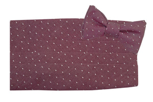 Elegant simplicity in rich burgundy chambray, scattered with crisp white dots. This coordinated set pairs a refined cummerbund with a matching bow tie - the kind of piece that works equally well at a wedding, formal dinner, or any occasion that calls for understated sophistication.