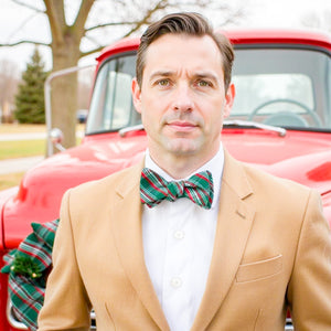 Celebrate the season in style with our Green Holiday Plaid Bow Tie. Crafted from soft cotton, this vibrant bow tie features a classic green, red, and white plaid pattern, perfect for adding a festive touch to your holiday wardrobe. Whether you're attending a holiday party, Christmas dinner, or any seasonal celebration, this bow tie is the ideal accessory to spread cheer and elevate your look. Embrace the spirit of the season with this charming, holiday-ready design!