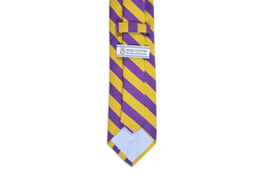 About This Item: Embodying boldness and confidence, both purple and gold have long-standing ties with US collegiate and professional athletic institutions. As part of our All American collection, this striped necktie perfectly captures that spirited tone and places it onto the wearer. It works exceptionally well as a power tie or as a complimentary accent to your casual attire. Although designed with love in North Carolina, this piece is Italian crafted and handwoven with our exclusive, slightly ribbed silk fabric.