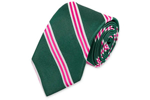 About This Item: A *Southern* Tradition Unlike Any Other. This handsome Augusta Green tie is infused with the iconic azalea pink and white stripes like those that line Augusta National. While you may not win the Green Jacket, the Augusta Stripe is the perfect substitute!
