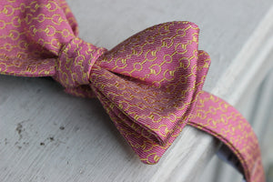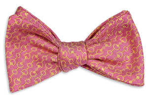 Whether it's your first Kentucky Derby or your fifth, this coral and gold derby bowtie is exactly what you need. Unbridle your style and ride into any event with this iconic accessory. Woven out of some of the finest quality silk in the world, and hand cut and sewn in the South.