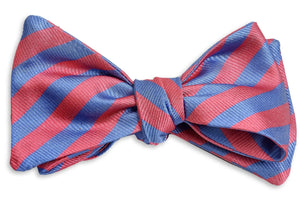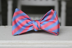 About This Item: This pink and blue bow tie is inspired by warmer evenings by the coast, pouring a big pot of Low Country Boil on top of a newspaper-covered table, and sharing the delicious, steamy food with friends and family. This is one of our favorite Southern Traditions and the Low Country Boil Bow Tie is our ode to southern heritage! This dapper blue and pink striped self-tie bow tie is woven out of some of the finest silk in the world, and hand cut and sewn in the South.