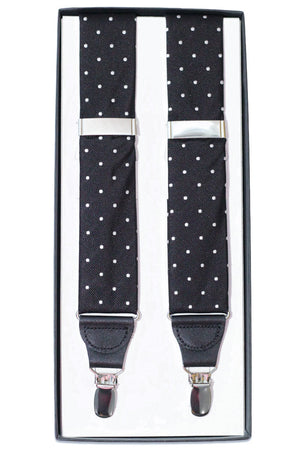 About This Item: Our Black Dot Silk Suspenders are a fantastic way to add some personality and sophistication to your suit or tux.